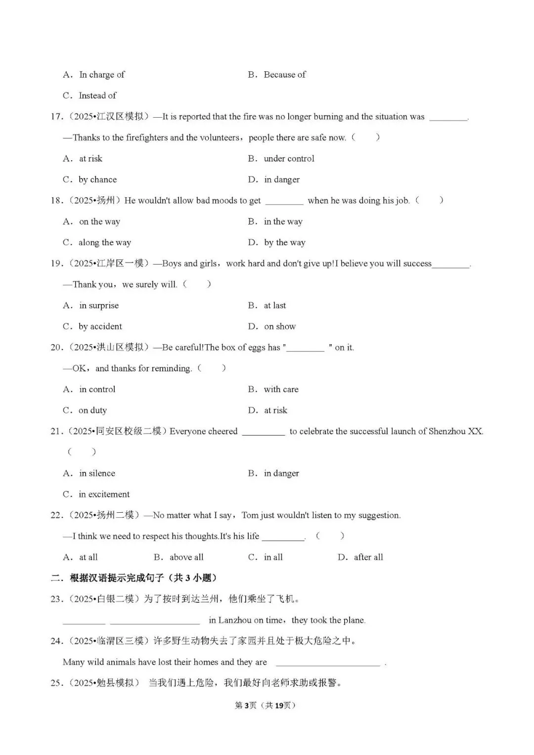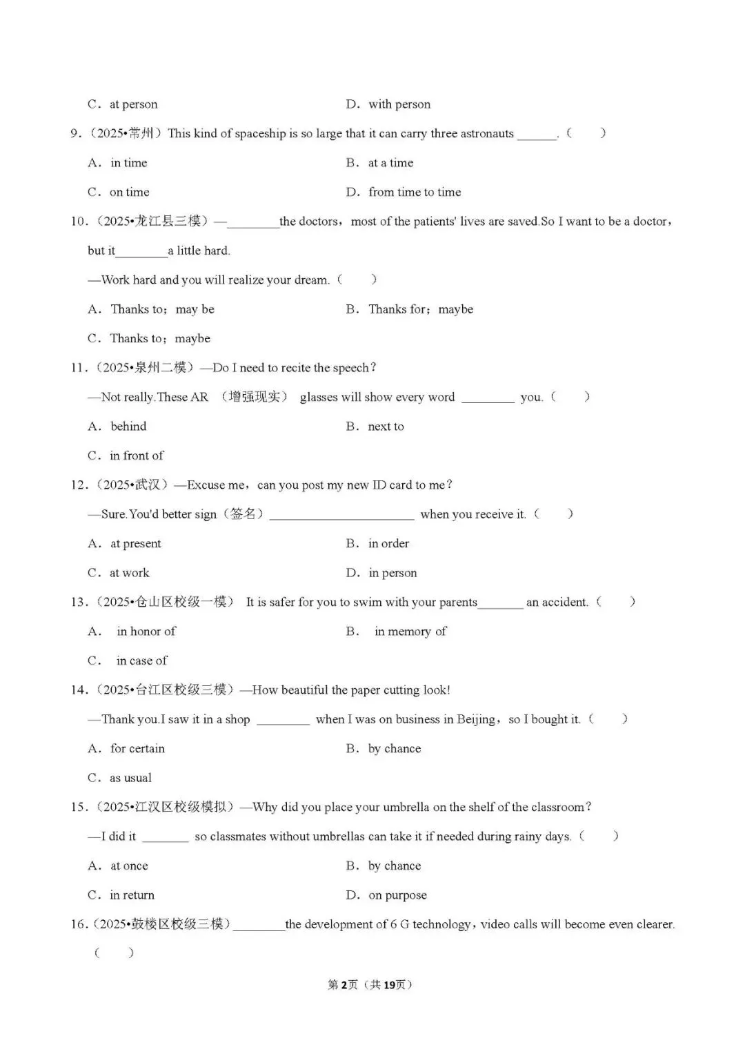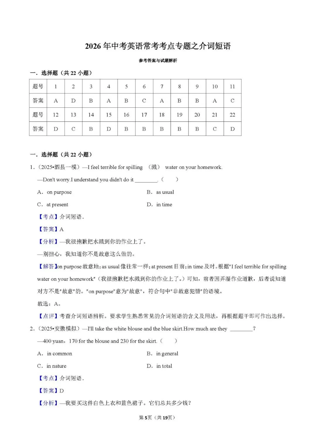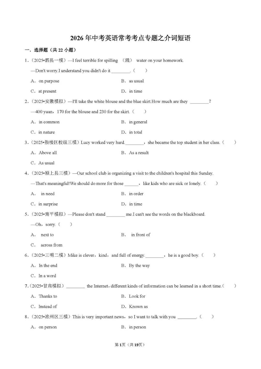 中考 | 初中英语 常考考点《介词短语》专项练习