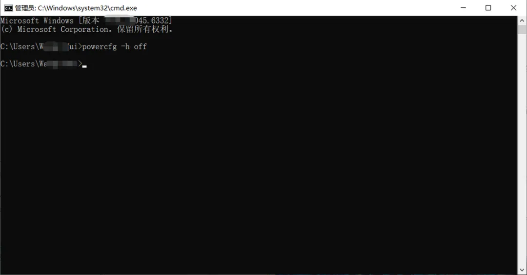 用休眠功能的人不多,可以关掉。以管理员身份打开命令提示符,输入powercfg -h off回车,休眠文件就删了。