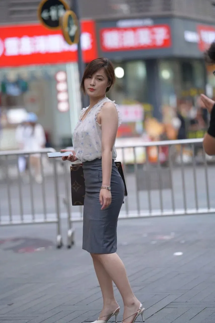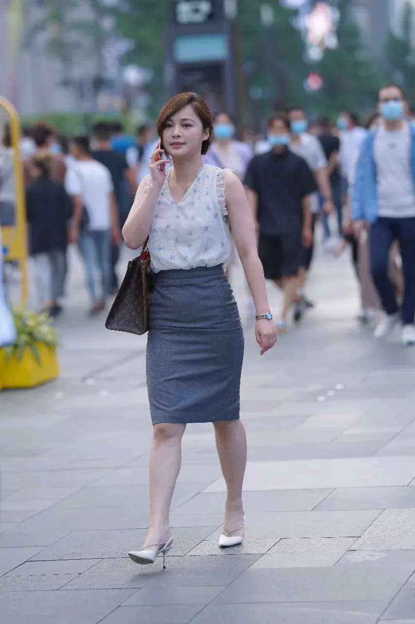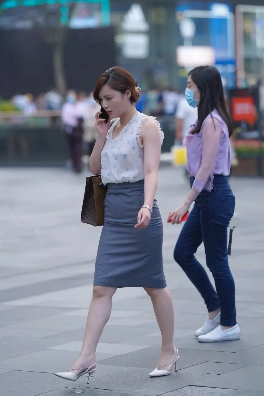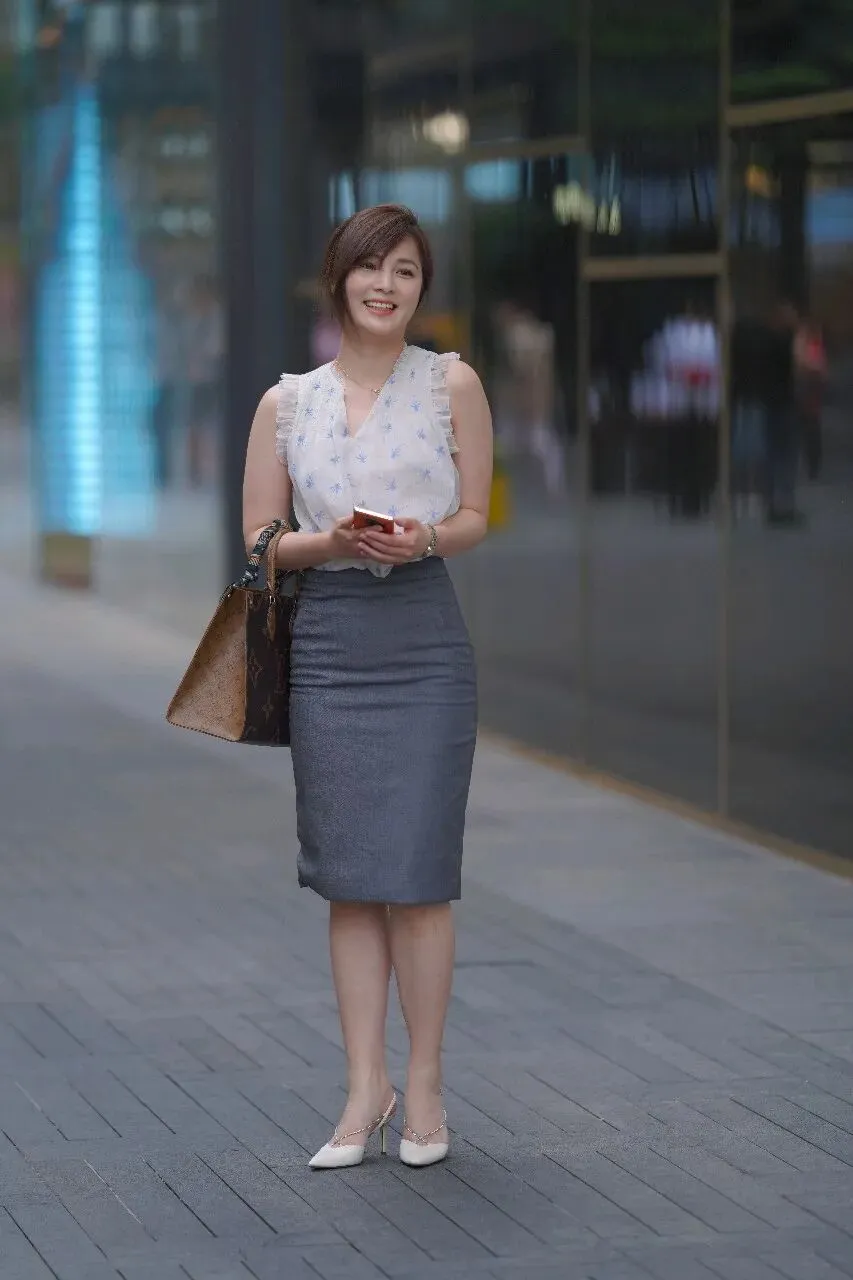 灰色半裙+白凉鞋,夏日职场通勤装的满分模板!今日高清套图(119P+3P)评论区置顶自取