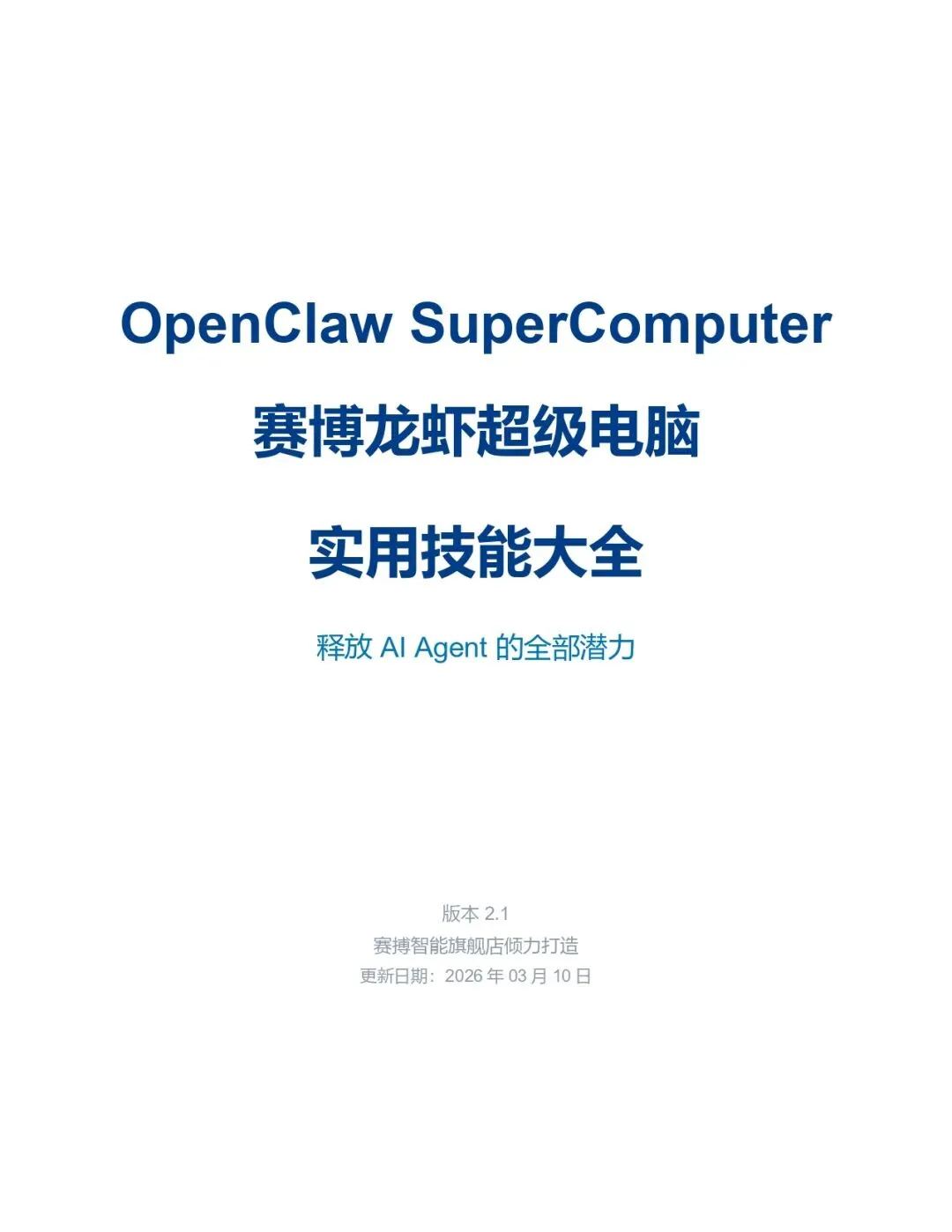 《赛博龙虾超级电脑实用技能大全》重磅来袭!2026 最新版本 2.1,从赛博朋克专属交互设定,到全品类 Skills 清单,再到金融从业者定制化技能推荐,一站式教你释放 OpenClaw SuperComputer 的全部潜力,堪称 AI Agent 使用的「全能操作手册」!