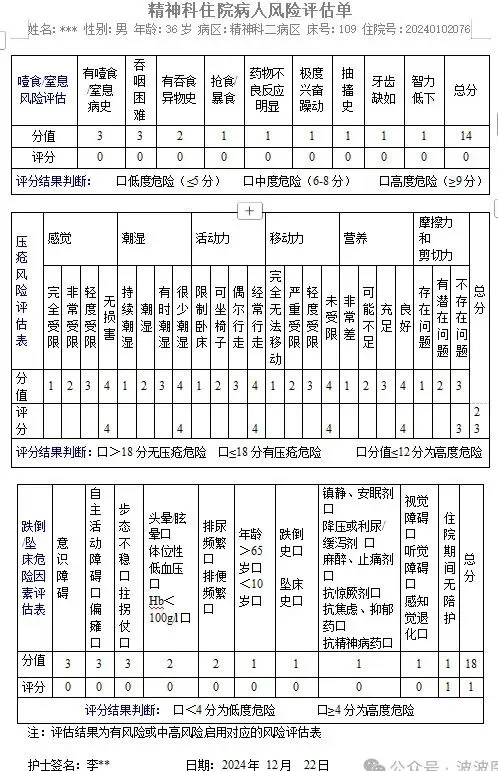姓名:*** 性别:男年龄:**岁病区:精神科二病区床号:78 住院号:20220205072