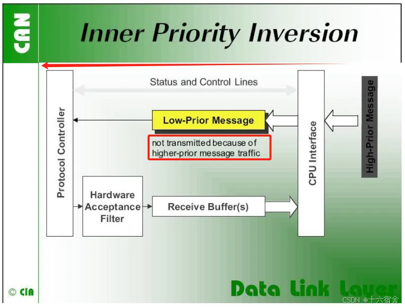 Inner Priority Inversion:内部优先级反转,指的是由于在同一发送硬件对象中存在待发的低优先级L-PDU,高优先级L-PDU的传输被阻止的情况。