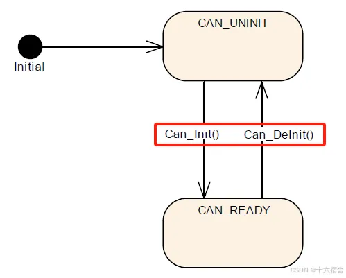 Can模块有一个非常简单的状态机,有CAN_UNINIT和CAN_READY两种状态。下图显示了状态