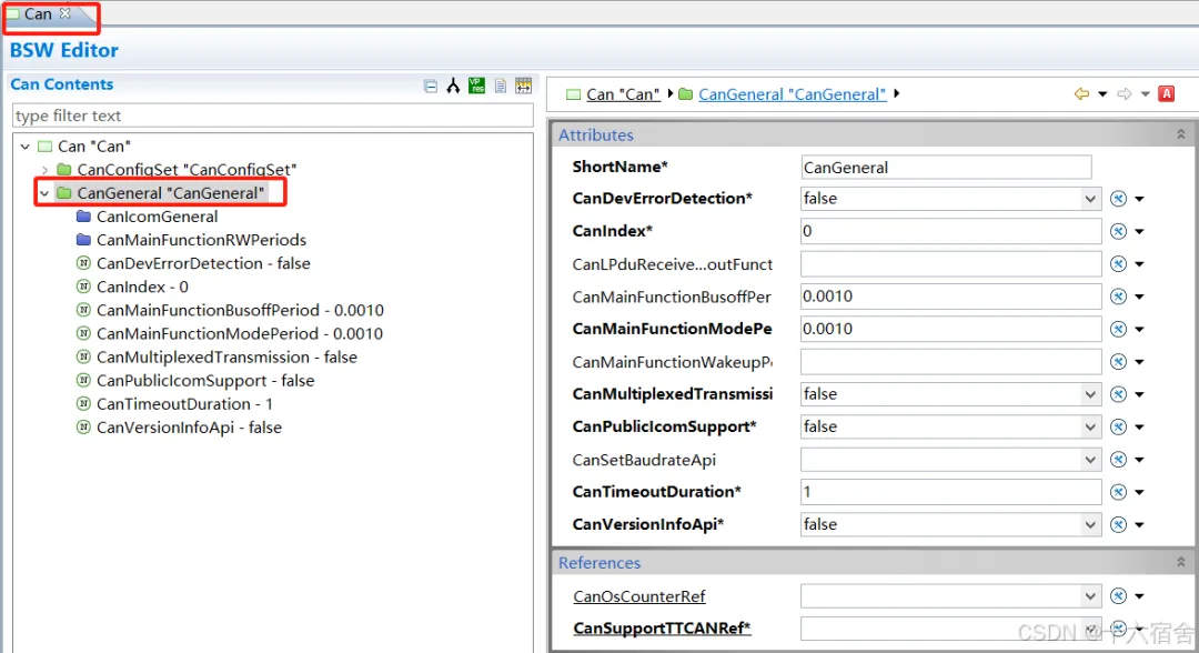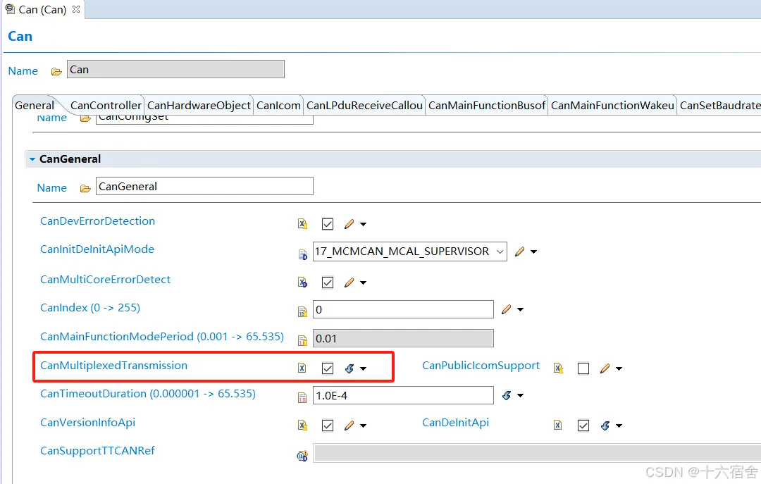 CanSupportTTCANRef:该参数指CAN接口模块配置中的CanlfSupportTTCAN参数。