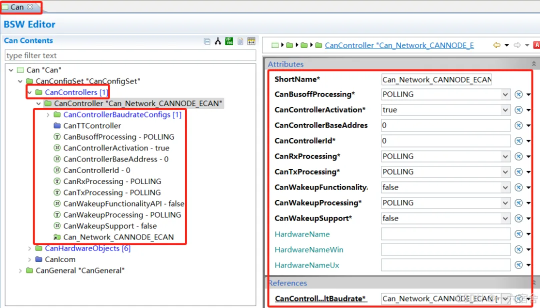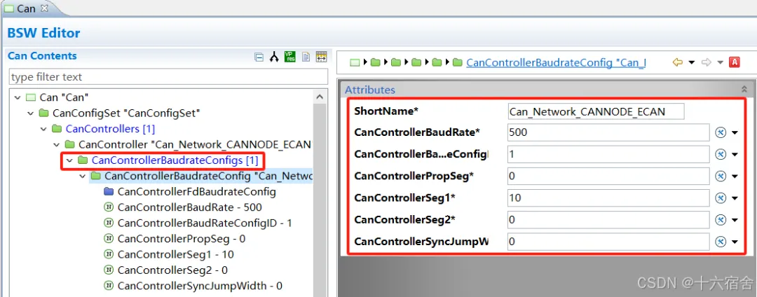 因为我们工程没有使用CAN FD,所以没有CanControllerFdBaudrateConfig子容器相关配置。