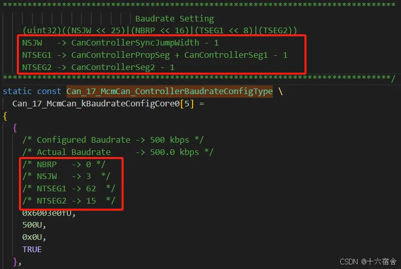 CanControllerDefaultBaudrate:参考为Can控制器配置的波特率配置容器。