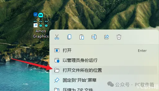 14.鼠标右击桌面【Amos Graphics】图标选择【打开文件所在的位置】。