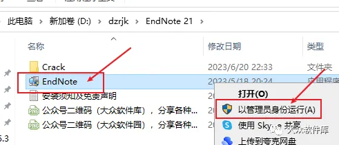 3.右键EndNote程序选择以管理员身份运行;