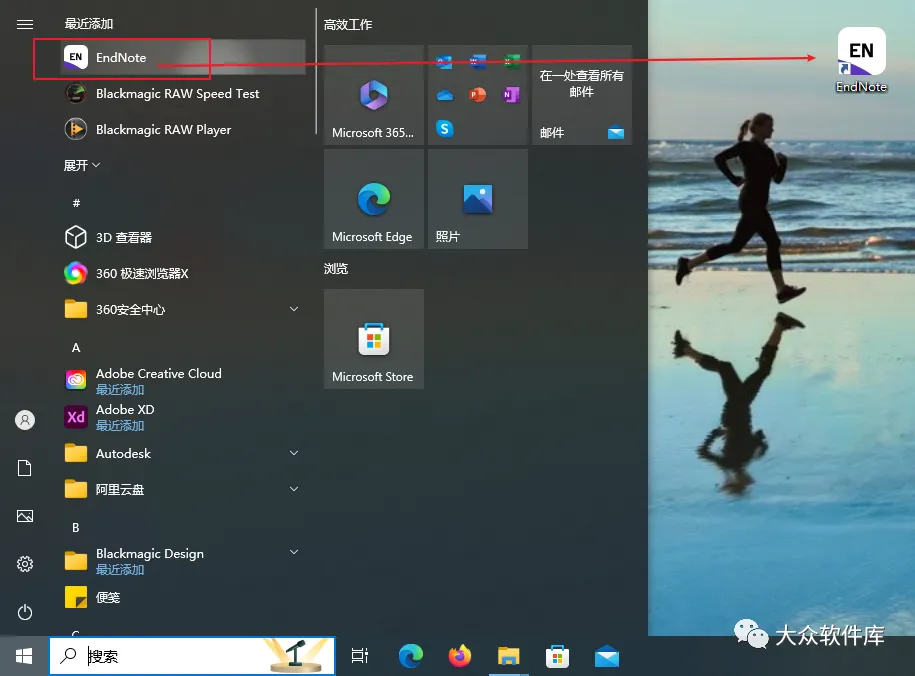 19.打开菜单找到刚刚装的EndNote软件,拖拽至桌面创建快捷方式;