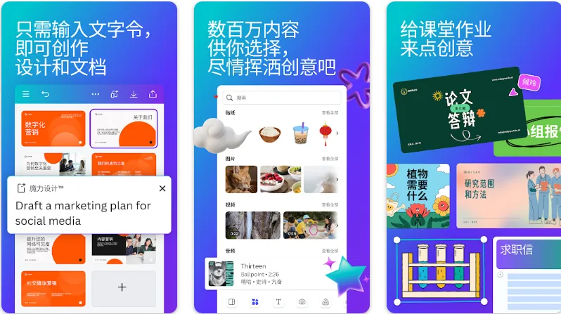 适合:做社交媒体配图、海报、PPT、简历等设计类需求。