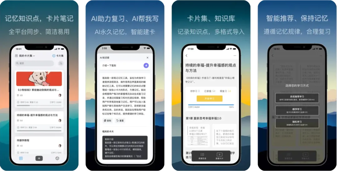 一款便捷的卡片笔记应用,亦是一款增强复习记忆的助手,它能将内容定制为单面或双面的卡片形式。