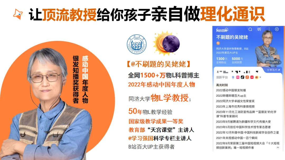 在物理课大获成功后,课程品牌方又联合中科院谭院士,研发了同样风格的化学课程。