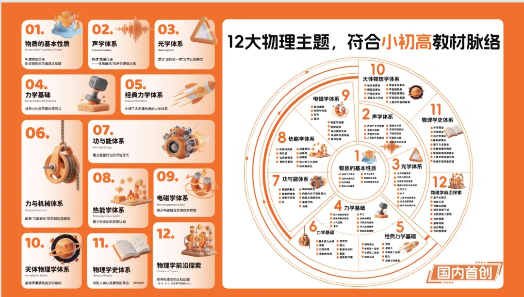 以物理为主线,融合人文、历史、地理、生物等学科,打造跨学科知识网络。