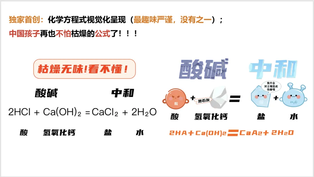 还有独特的视觉化化学方程式呈现: