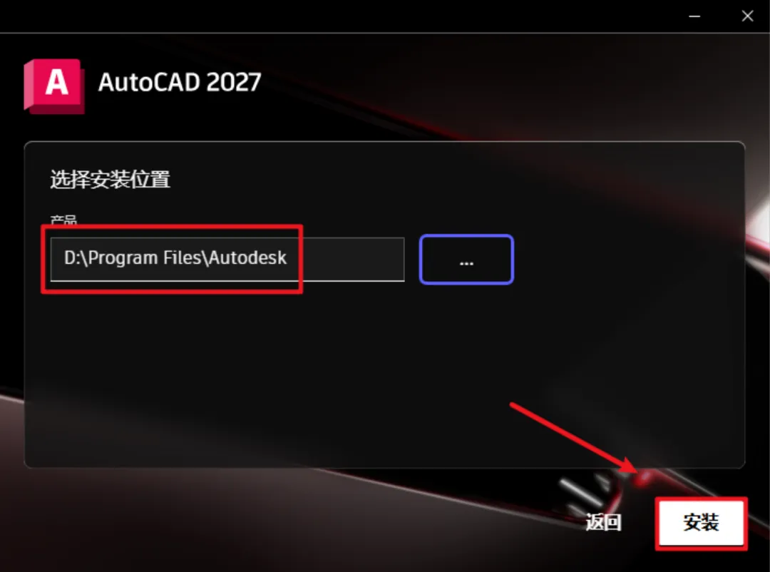 4.可以点击【...】选择CAD软件安装位置,不要有中文,选择好直接点击【安装】。