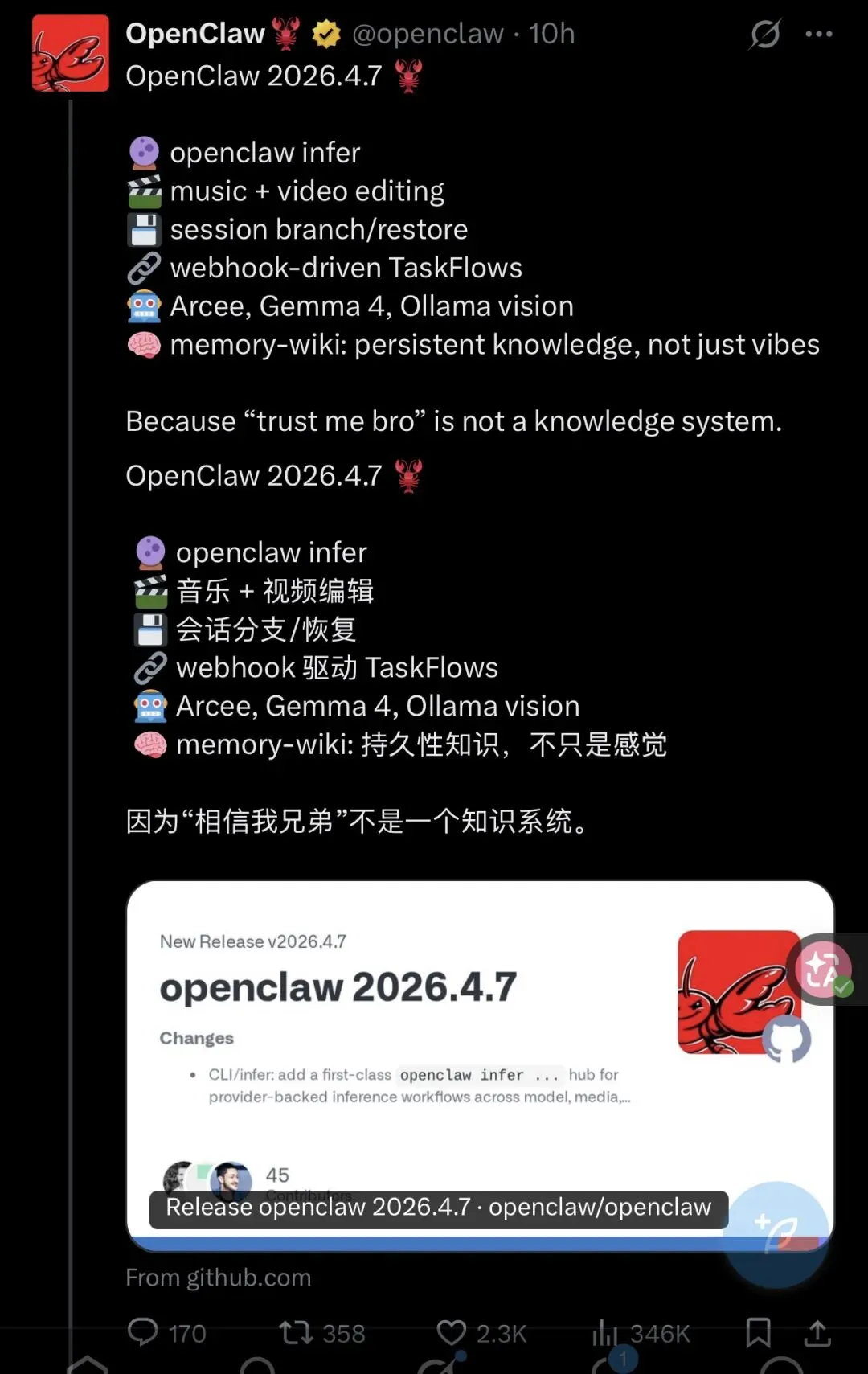 如果你把这次更新,只看成“又发了一个版本”,那你其实没看懂 OpenClaw 现在到底在往哪儿走。