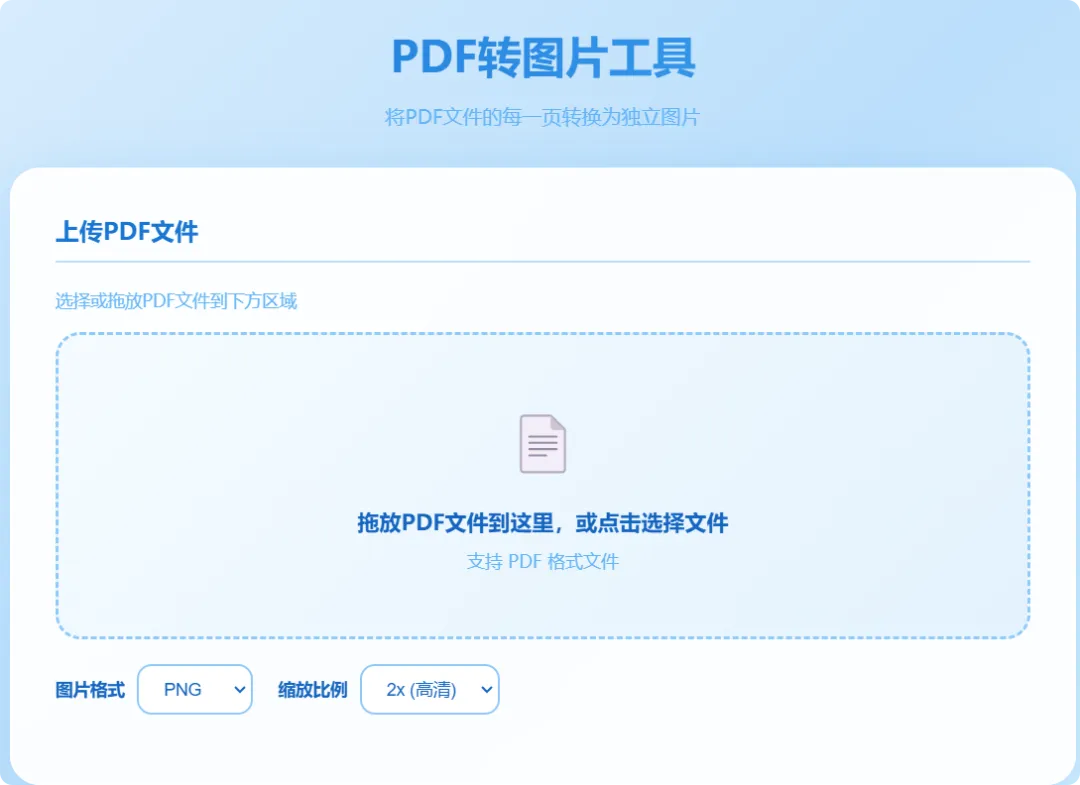 AI 编程小工具(020/100)— PDF转图片工具🌟 系统简介一款实用的PDF转图片工具,支持将PDF文档的每一页转换为高清图片,方便预览和编辑。适用场景• ✅ PDF内容预览• ✅ 文档图片提取• ✅ 演示文稿制作• ✅ 内容分享传播✨ 核心功能功能说明📄 PDF上传支持本地PDF文件上传🖼️ 逐页转换每页转换为独立图片🎨 高清输出支持多种分辨率选择💾 批量下载一键下载所有转换图片💡 无论是提取PDF图片还是转换文档格式,这款工具都能帮你轻松完成!演示动画:获取访问方式及其它需求可添加微信:573453643