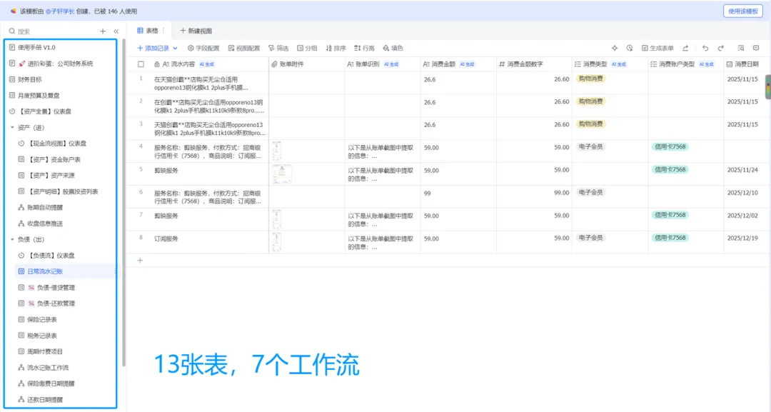 整套表格系统 + 应用模式配套,13 张子表,5 个工作流,如何使用和发挥的效果,上一篇已经分享过了。