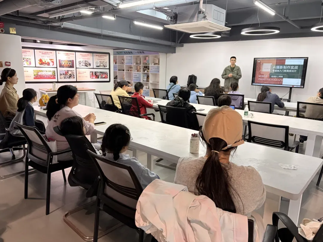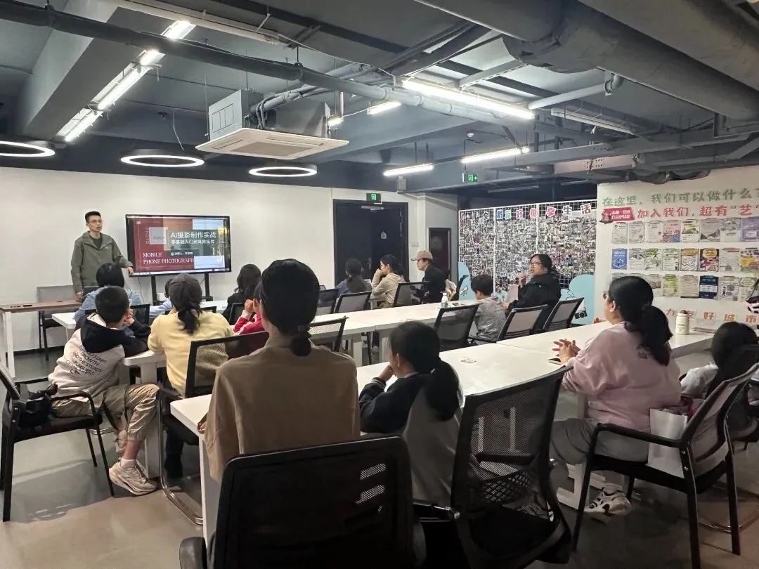 2026 年4月4日,浙江安防职业技术学院创意设计学院数字媒体技术教师黄梁鹏带领 5 名数字媒体技术专业学生志愿者,走进 “瓯江红” 党建人才综合体负一层手工坊,开展 AI 亲子摄影志愿服务活动,20 组亲子家庭在欢声笑语中完成了一场 “学拍修” 一站式趣味摄影课,以专业力量赋能社区亲子美育与党建服务。