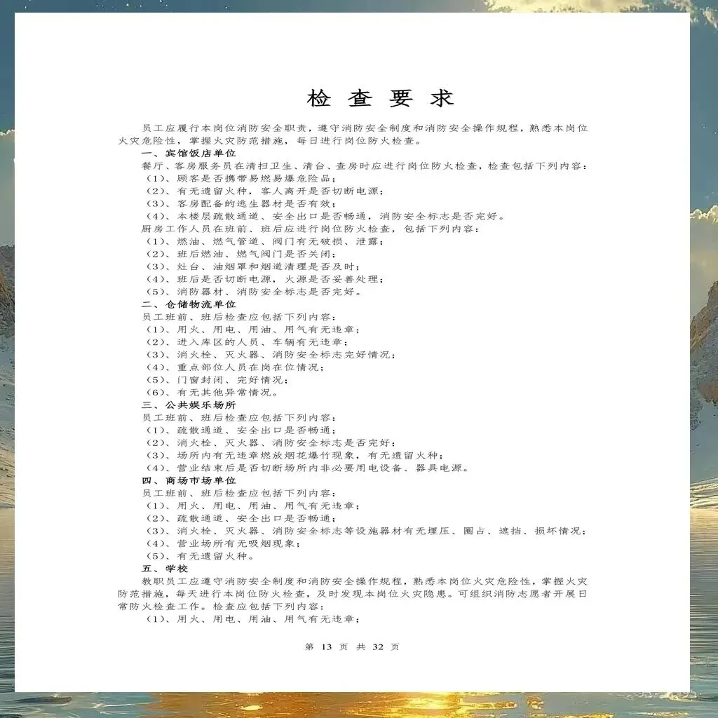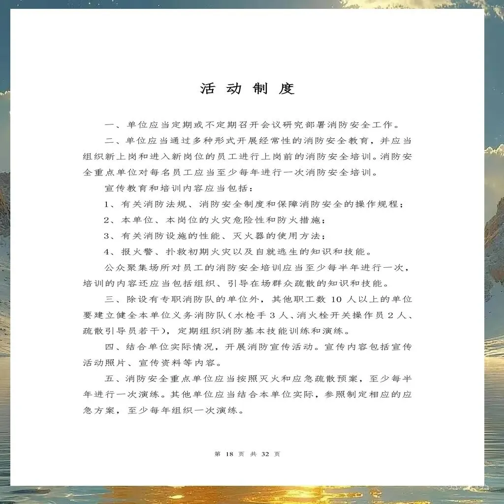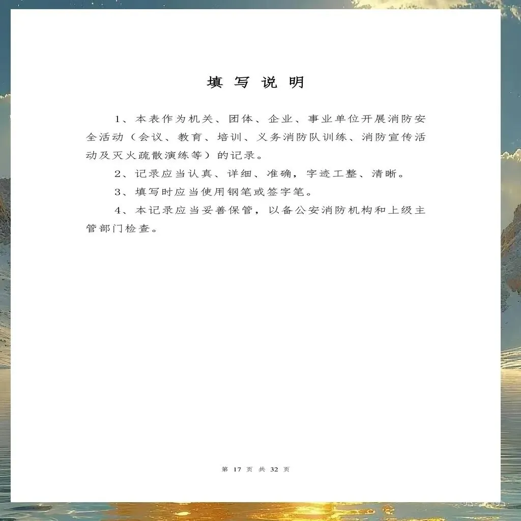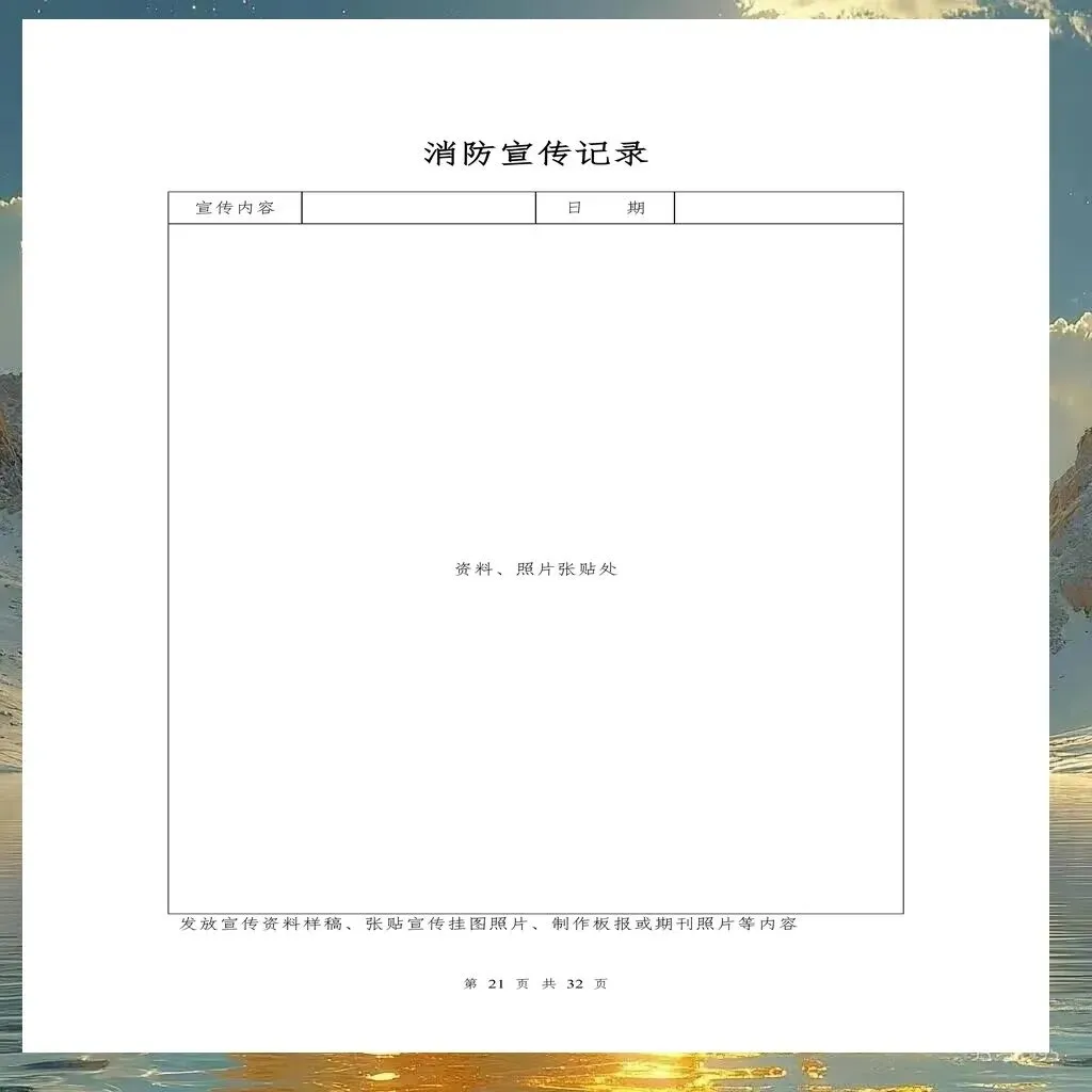消防安全台账一般分为以下类别:消防安全基本情况类、消防安全管理制度类、消防设施器材类、消防安全检查类、消防安全培训类、火灾隐患整改类、灭火和应急疏散预案类、消防工作记录类。每类台账应设置目录页,便于查阅和管理。