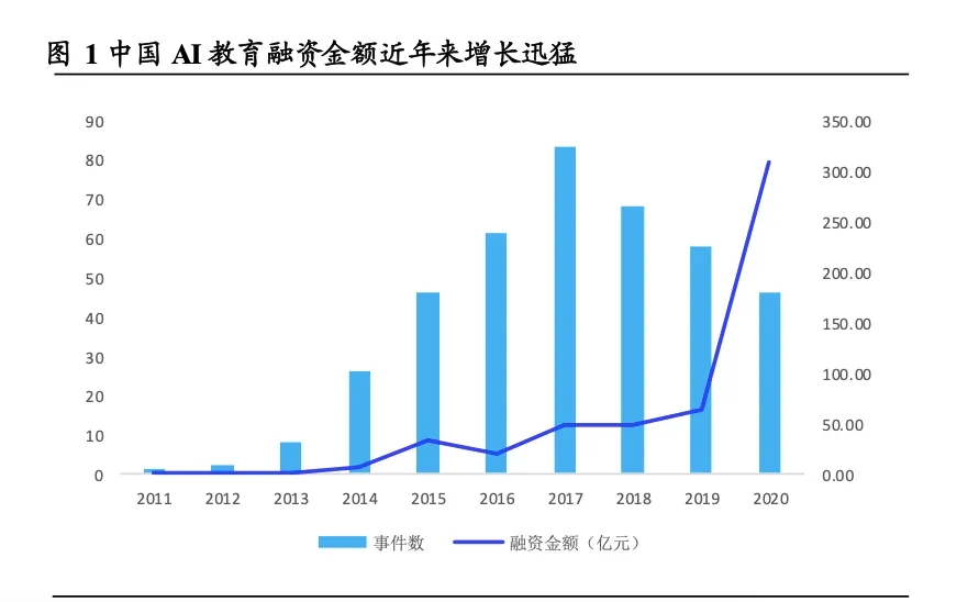 也是在2020年,国内AI教育公司融资额超过300亿元,创下10年新高。几年前的暑期大战,记忆犹在。