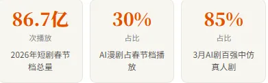 💬 行业现实:AI短剧播放量虽然狂飙,但用户付费意愿是四类内容中最低的——"恐怖谷效应"依然挥之不去。腰部真人演员正在经历这波冲击最深的寒冬,而AI仿真人剧与真人剧的版权博弈,可能是2026年影视行业最难厘清的那条线。