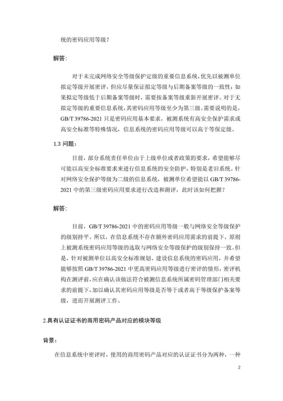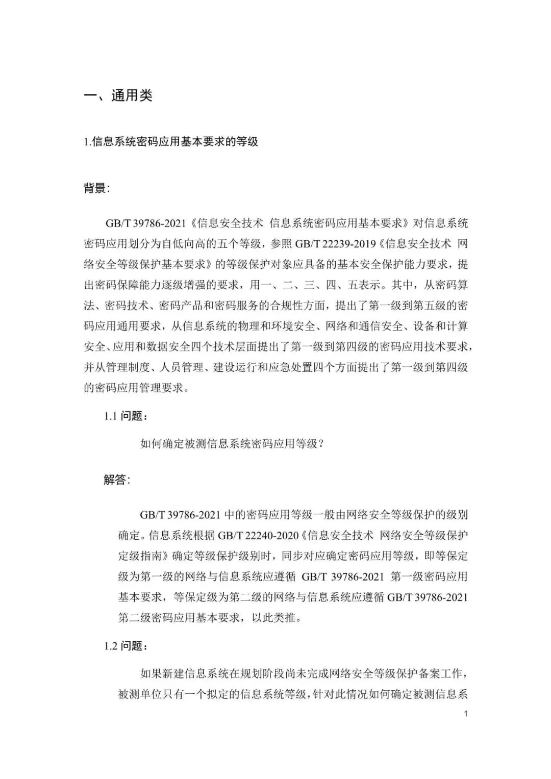 GB/T 39786-2021《信息安全技术 信息系统密码应用基本要求》对信息系统密码应用划分为自低向高的五个等级,参照 GB/T 22239-2019《信息安全技术 网络安全等级保护基本要求》的等级保护对象应具备的基本安全保护能力要求,提出密码保障能力逐级增强的要求,用一、二、三、四、五表示。其中,从密码算法、密码技术、密码产品和密码服务的合规性方面,提出了第一级到第五级的密码应用通用要求,从信息系统的物理和环境安全、网络和通信安全、设备和计算安全、应用和数据安全四个技术层面提出了第一级到第四级的密码应用技术要求,并从管理制度、人员管理、建设运行和应急处置四个方面提出了第一级到第四级的密码应用管理要求。