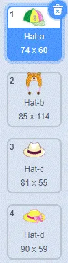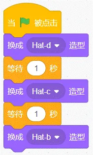 12.帽子角色的初始造型如下图所示,能让帽子角色造型切换顺序为:“Hat-b”、“Hat-c”、“Hat-d”的选项是?( )