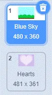 13.初始造型和背景如下图所示,点击一次箭头后,舞台上显示?( )