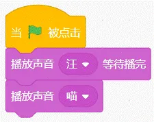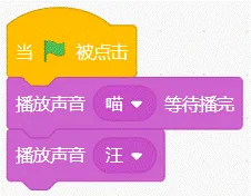 14.下列程序运行后,能先听见“喵”的声音,在“喵”声音播放结束后,能听到“汪”声音的是?( )