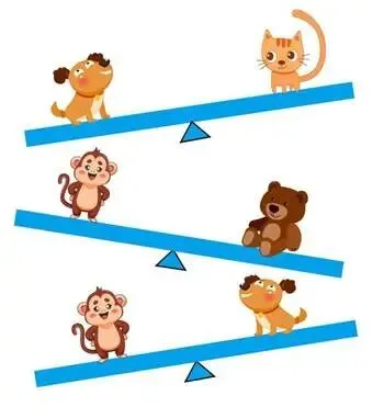 18.小狗、小猴、小熊、小猫在玩跷跷板如下图所示,哪只动物最重?( )