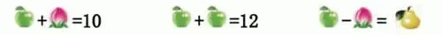 试题解析:由图可知,两个苹果相加等于12,所以苹果等于6;苹果+桃子=10,桃子等于4;苹果-桃子=梨,所以梨等于2