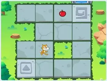 试题解析:B选项,在点击绿旗后,小猫向上移动一格,接着向右移动一格,最后向下移动到草丛的位置,所以B选项错误