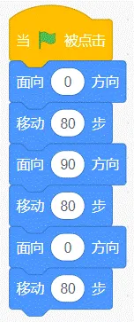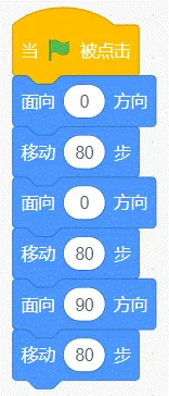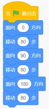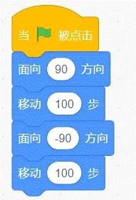 34.小猫的程序如下图所示,运行程序后,小猫向右移动了100步。( )