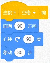 21.角色小猫的初始位置、方向及程序如下图所示,小猫移动80步是一格的距离。按下2次空格键后,小猫会移动到哪一个位置?( )