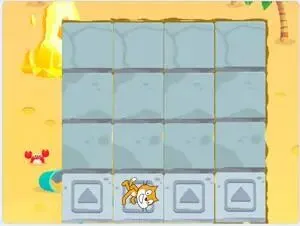 试题解析:每按下一次空格键,小猫都会往下移动一格,按下两次,小猫就会向下移动两格,答案选A