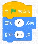 试题解析:默认小猫运行这段程序后,会向下移动50步,并且面向下方。能实现相同效果的是C选项。