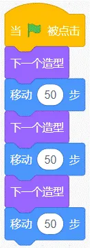 35.角色有3个不同的造型,运行程序后,能够看到角色换3次造型,移动3次。( )