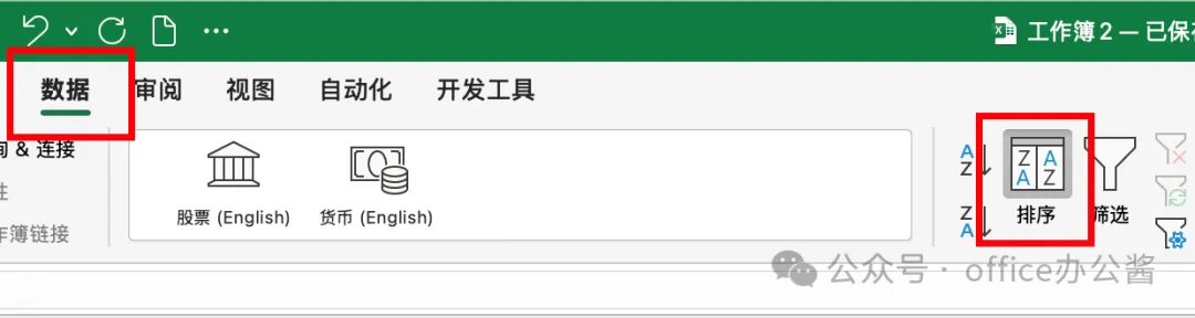 1、选中数据区域 → 点击数据选项卡 → 选择排序