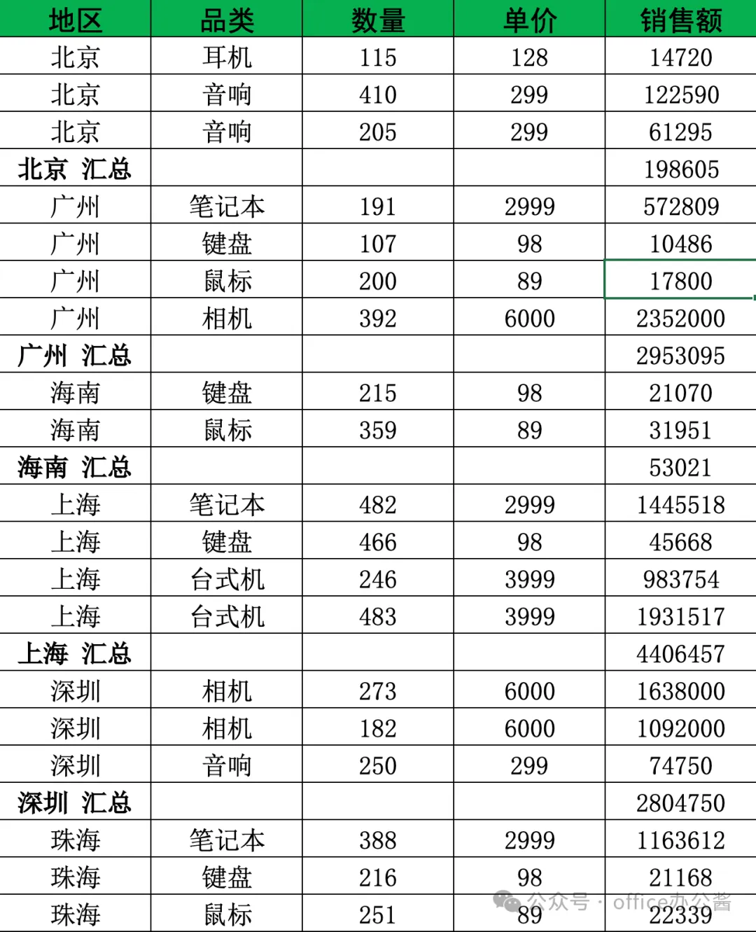 关注公众号【office办公酱】,回复关键词"分类汇总",即可免费领取: