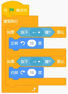 2.下列哪个选项可以控制:按下左键扫帚向左旋转15度,按下右键扫帚向右旋转15度?()