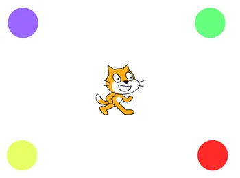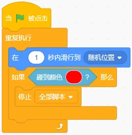 试题解析:小猫一直移到舞台随机位置,如果碰到红色,程序结束,红色圆点在右下角,小猫最后停在右下角。