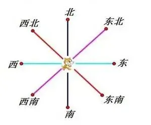 试题解析:小猫面向180方向,面向下方,那么就是南。