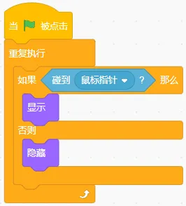 31.运行下列程序,如果鼠标指针碰到角色,角色会隐藏。()
