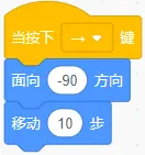 解析:题中要求是按键控制,排除A;B是按下任意键只右转,无法实现左转,排除;D选项是按下←面向-90,按下→面向90,无法实现转动;故选择C。