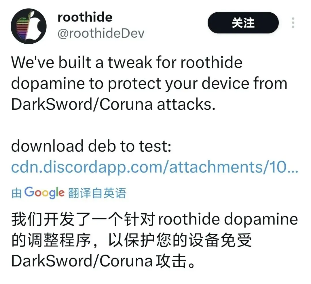 • 针对性防御:它专门针对 Coruna/DarkSword 等通过 WebKit 注入攻击的病毒载荷。 • 无需升级:你不需要抛弃现在的 iOS 16.x 系统,不需要忍受新版本带来的卡顿,仅靠插件即可实现同等级别的防御。 • 透明开源:由知名开发者 @roothide 亲手打造,配合 Dopamine(多巴胺)越狱环境,安全可信。