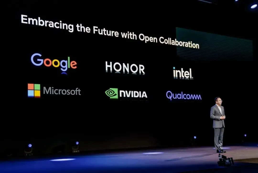 就在 MWC 的发布活动上,荣耀宣布了与微软、谷歌、高通、英特尔以及英伟达等多家科技巨头拥抱未来,基于荣耀打造的平台级 AI 全面优化 Android 和 Windows 两个平台上的互联体验,颠覆过去以机器为中心的传统方式,实现基于意图识别的全新人机交互方式以及跨设备、跨系统的无缝互联体验。
