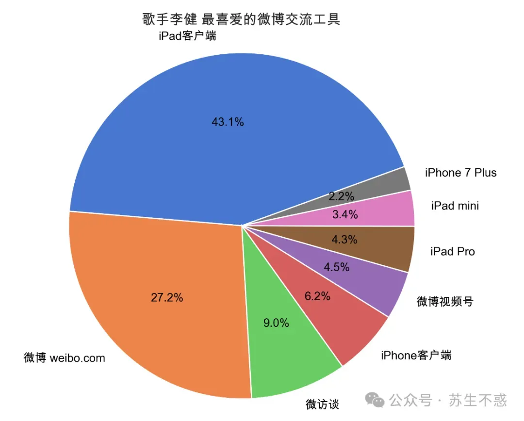 import pandas as pddf=pd.read_csv('weibo/歌手李健/1744395855.csv')df['sort']=df['点赞数']+df['转发数']+df['评论数']df.sort_values(by=['sort'],ascending=False, inplace=True)df.head(10).to_csv('歌手李健.csv',encoding='utf_8_sig',index=False)https://www.weibo.com/1744395855/LgnjmrmvFhttps://www.weibo.com/1744395855/Cc3T09sqMhttps://www.weibo.com/1744395855/C9UW2BmNdhttps://www.weibo.com/1744395855/ChaNZmx6A https://www.weibo.com/1744395855/Jfpw2xihvhttps://www.weibo.com/1744395855/CfNZzoAMVhttps://www.weibo.com/1744395855/Ckrkv2A0bhttps://www.weibo.com/1744395855/Fn3bhwNWvhttps://www.weibo.com/1744395855/Gt5of2OCohttps://www.weibo.com/1744395855/Gt5of2OCo顺便分析下微博发布工具比例图: