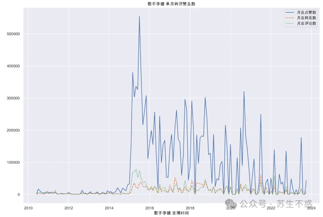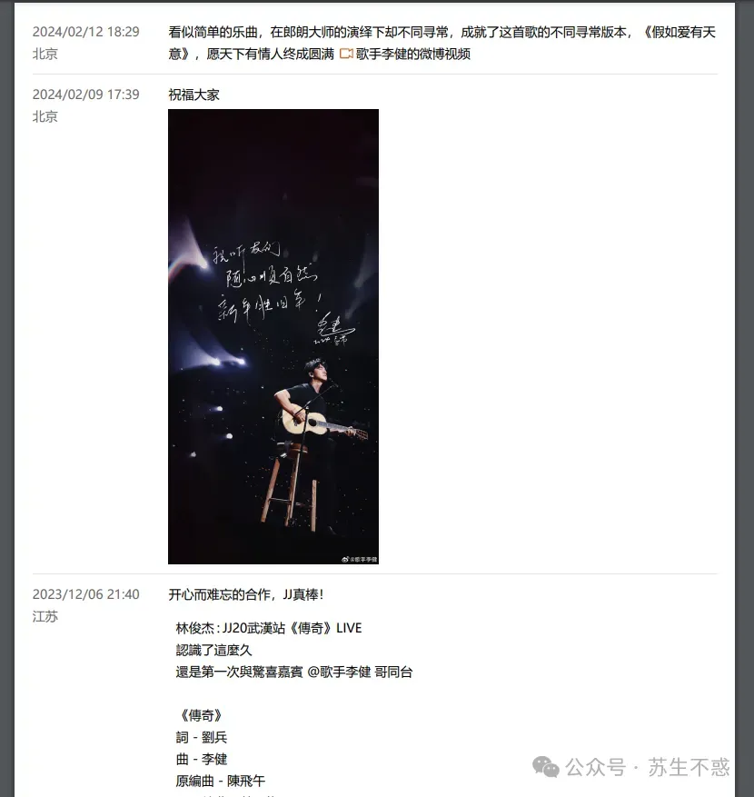 李健第一条微博发布于2010年。