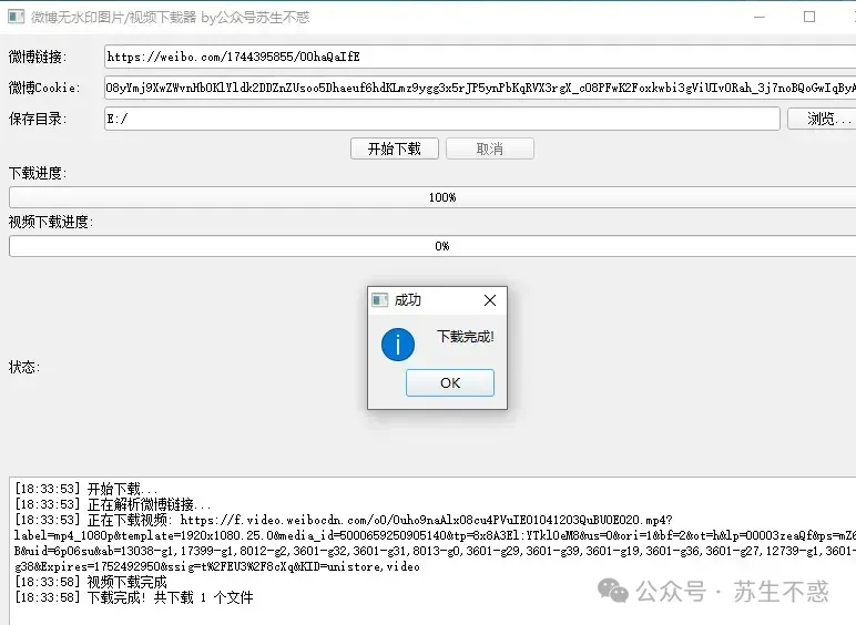 最近我结合AI用python开发了个微博无水印图片和视频下载工具。